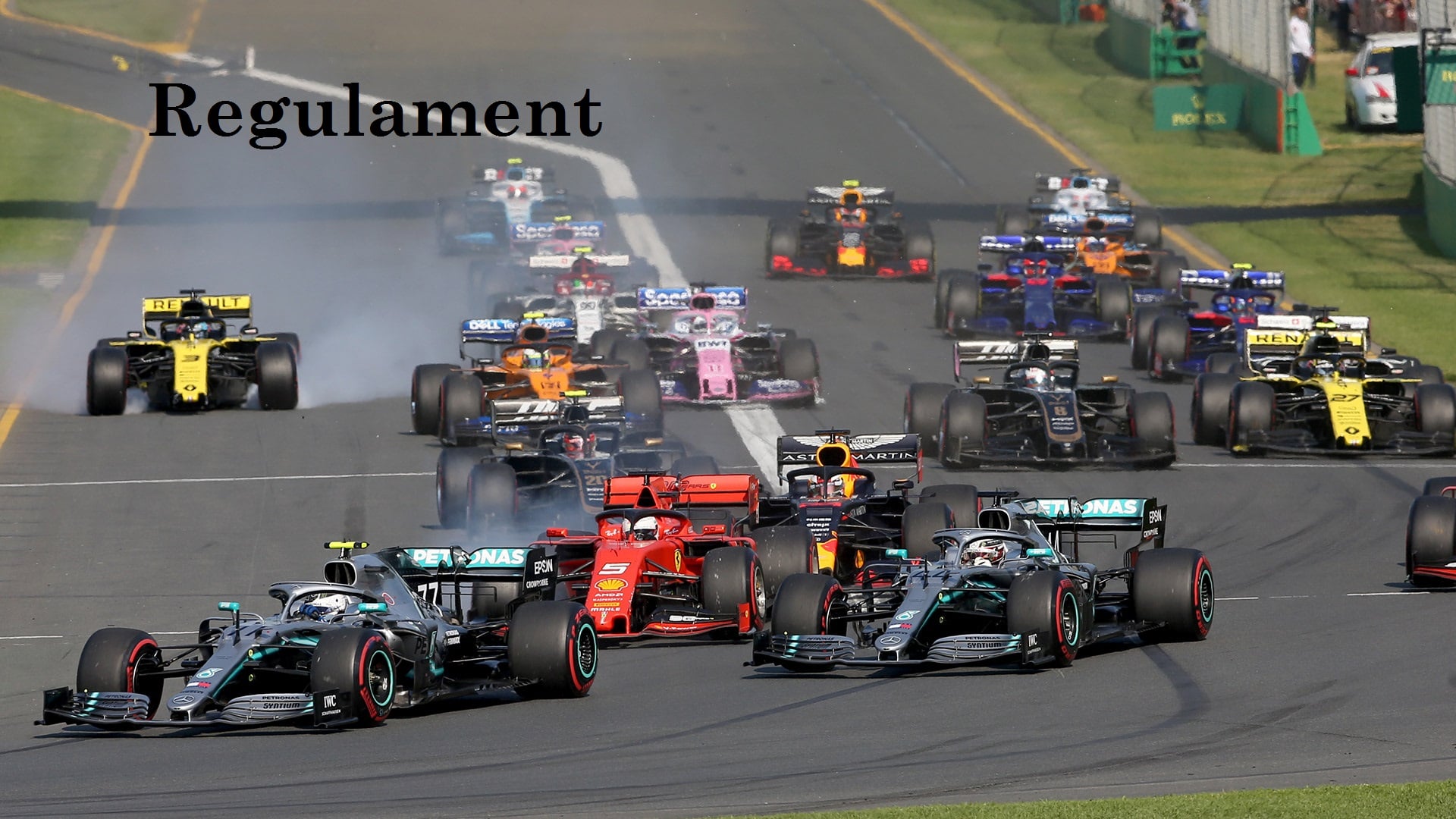 - Cu un minut înainte de startul în turul de încălzire motoarele trebuie pornite, iar personalul echipelor mai are la dispoziție 45 de secunde să părăsească grila.
